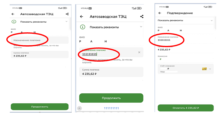 При оплате услуг электроснабжение, отопление и горячее водоснабжение через кассы/терминалы и личные кабинеты ПАО Сбербанк РФ УКАЗЫВАЙТЕ НОМЕР ЛИЦЕВОГО СЧЕТА в поле «Назначение платежа» или проводите оплату услуг через иные банки-сборщики.